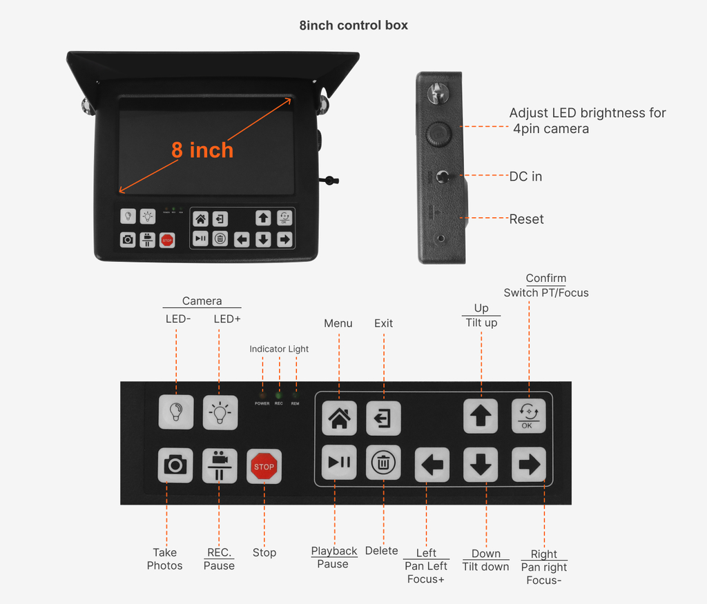 Possui um design à prova de água, permitindo a sua utilização nos ambientes mais desafiantes, e um cabo de 200 m para inspeção profunda. Com a sua avançada tecnologia AHD, os utilizadores podem esperar imagens nítidas e claras.